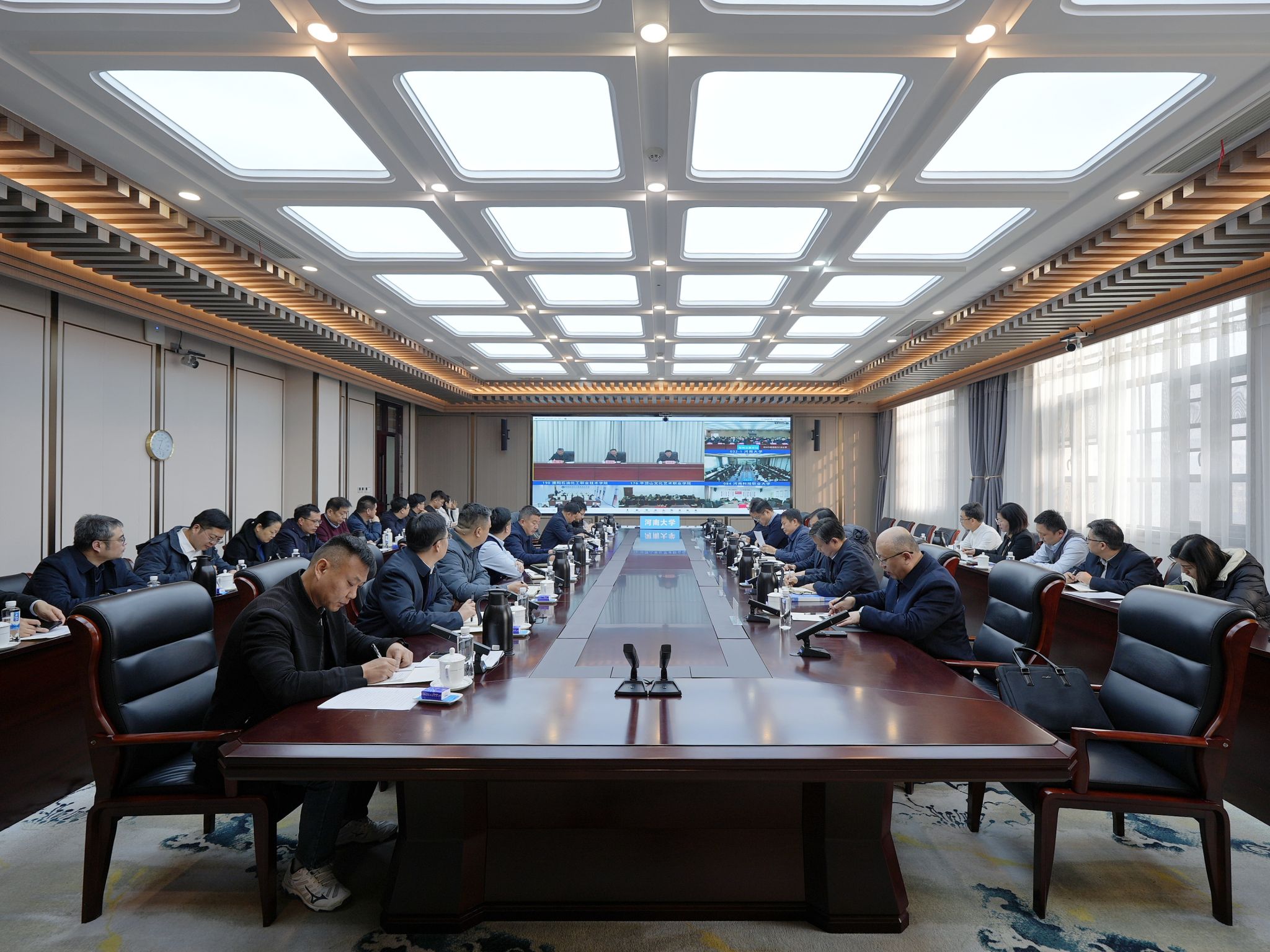 12月18日上午,全省教育系统安全工作会议在郑州召开。我校在郑州龙子湖校区友兰学堂中楼305会议室设立分会场。全体在校校领导、校安全工作委员会各成员单位负责人参会。